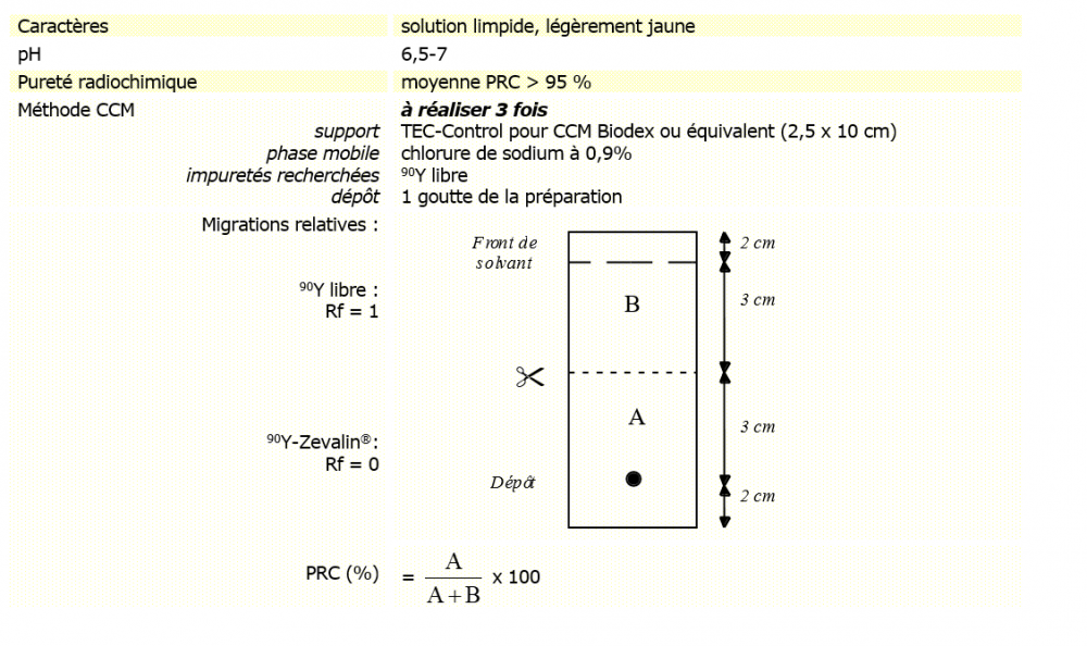 Tableau II. Contrôle physico-chimique du 90Y-Zevalin®